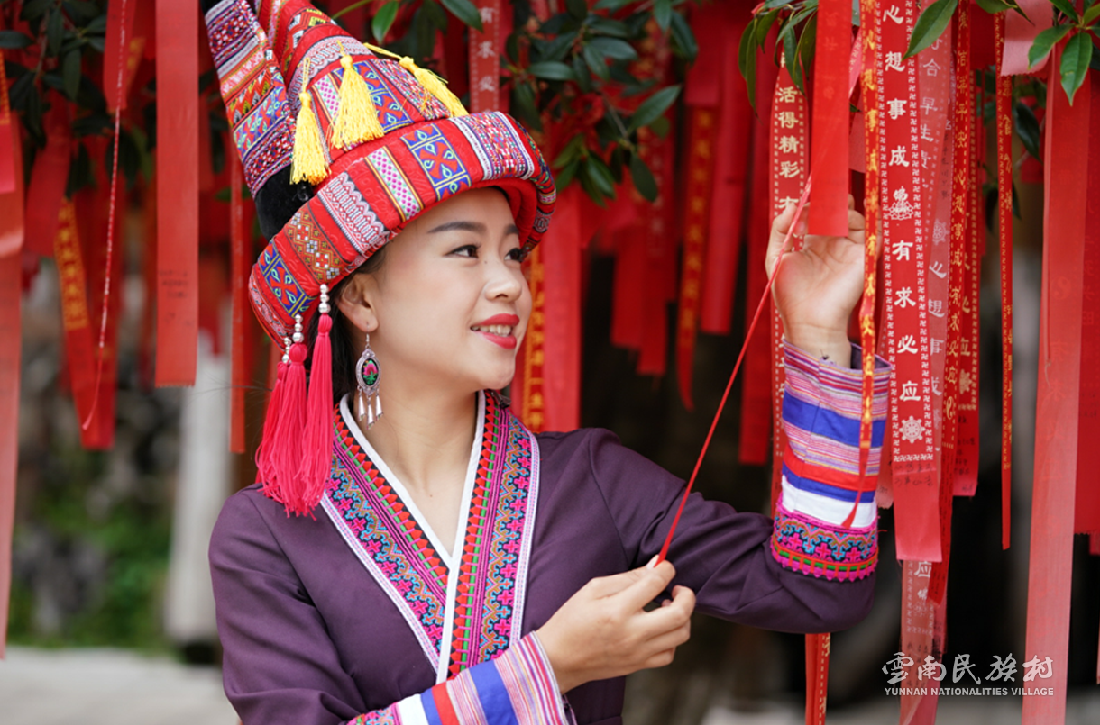彝族在云南境內(nèi)約471萬人,是省內(nèi)人口最多、分布最廣的少數(shù)民族,主要聚居在金沙江、元江流域和哀牢山、無量山腹地。彝族是一個(gè)能歌善舞的民族,民間打歌、跳樂之風(fēng)盛行,大三弦、跌腳舞久負(fù)盛名。火把節(jié)是彝族最具特色的民族節(jié)日。彝族村占地50余畝,三虎浮雕墻與虎頭內(nèi)祖師形象表現(xiàn)了彝族虎鷹文化。太陽歷廣場(chǎng)圖騰柱上有太陽、虎、火和八卦圖形象,周圍環(huán)繞著10個(gè)朝向不同的月球造型,外圓周有12生肖石雕。依山而建的“...